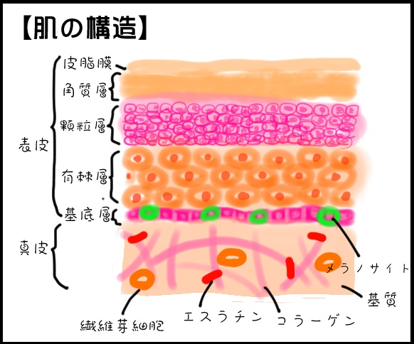 肌の構造や役割を知っているだけで、スキンケアの仕方が変わります。 美肌への近道は正しい知識をもつことです。 今回はお肌の構造についてご紹介します! 皮膚の構造(ひふのこうぞう) 一般的に「皮膚(ひふ) ...