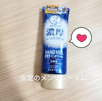 現在、愛用中のメンソレータムの濃厚こってりクリームのハンドベールです。
